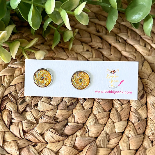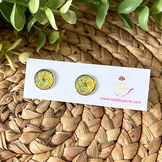 SALE: Yellow "Swirled" Faux Druzy Studs 12mm: Choose Silver or Gold Settings - LOW STOCK