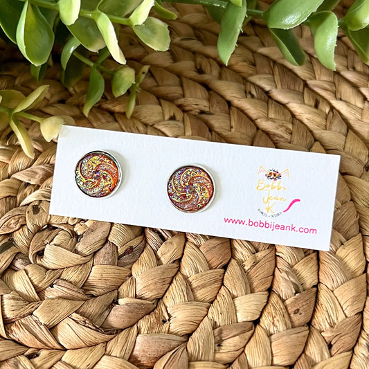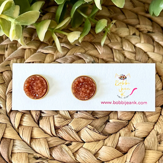 SALE: Orange "Swirled" Faux Druzy Studs 12mm: Choose Silver or Gold - LOW STOCK