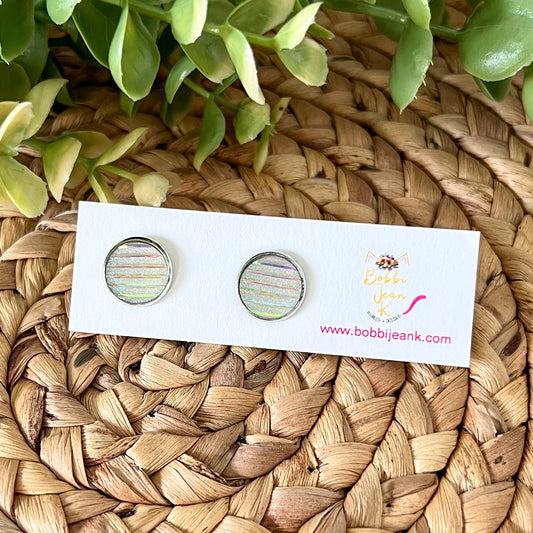 SALE: Iridescent Crystal "Striped" Faux Druzy Studs 12mm: Choose Silver or Gold Settings