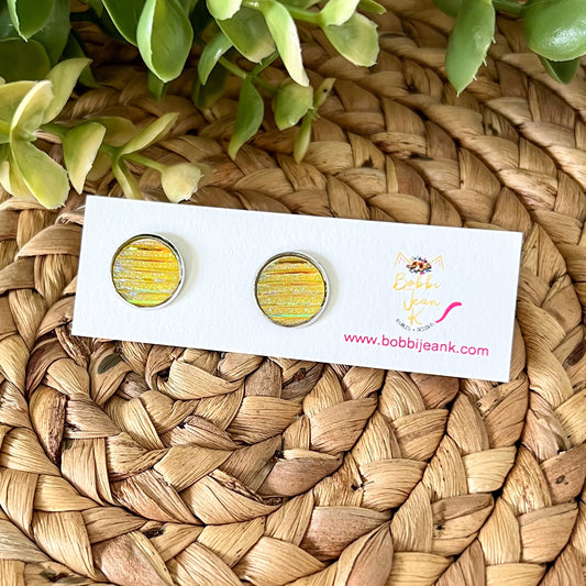 SALE: Iridescent Lemon Yellow "Striped" Faux Druzy Studs 12mm: Choose Silver or Gold Settings