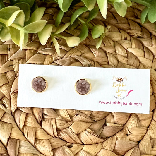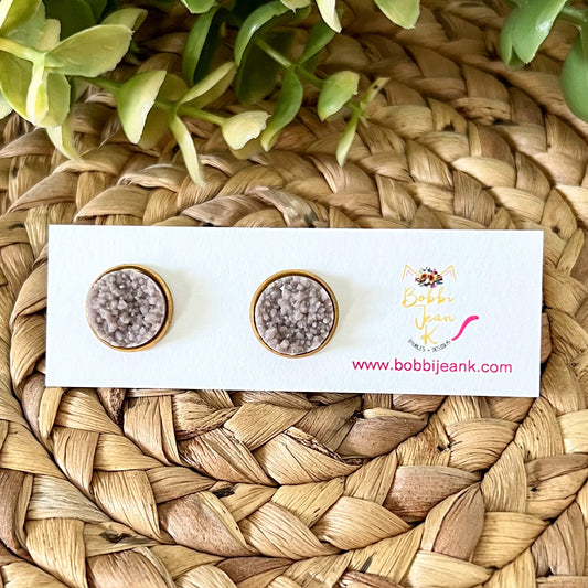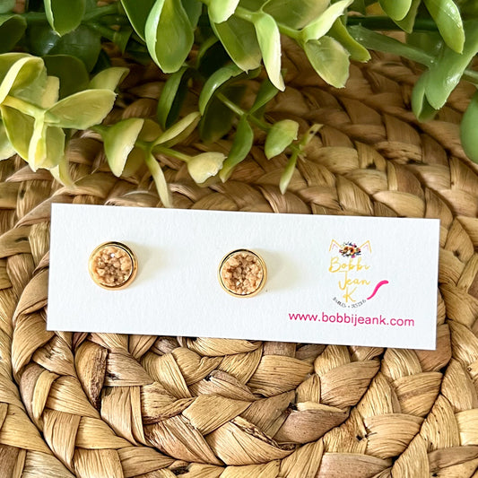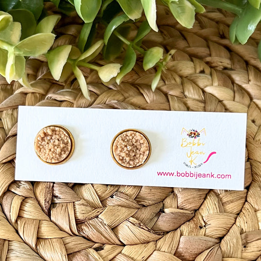 SALE: Sandy Beach Raised Faux Druzy Studs 8mm: Choose Silver or Gold Settings - LOW STOCK