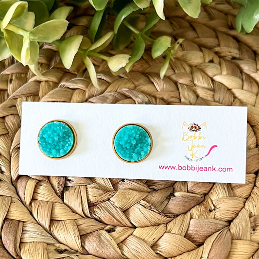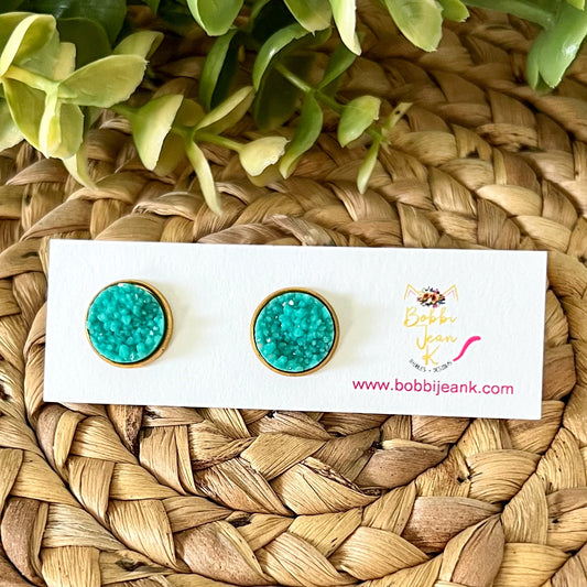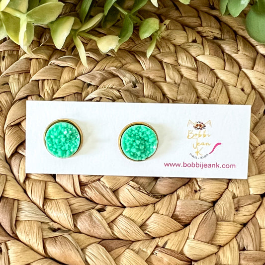 SALE: Icy Mint Raised Faux Druzy Studs 12mm: Choose Silver or Gold Settings - LOW STOCK