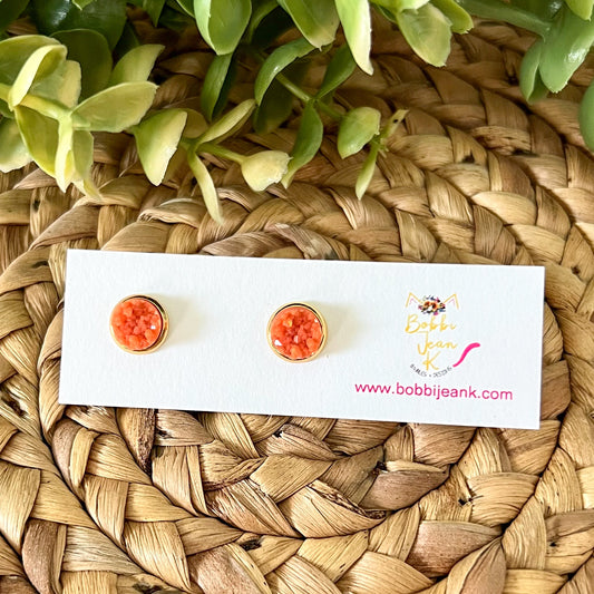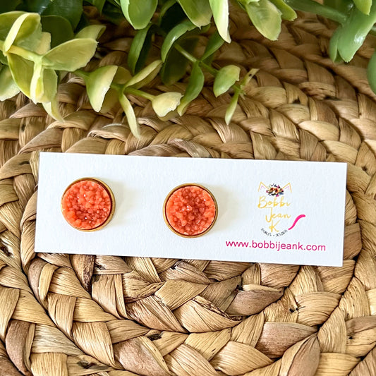 SALE: Tangerine "Swirled" Faux Druzy Studs 12mm: Choose Silver or Gold Settings - LOW STOCK
