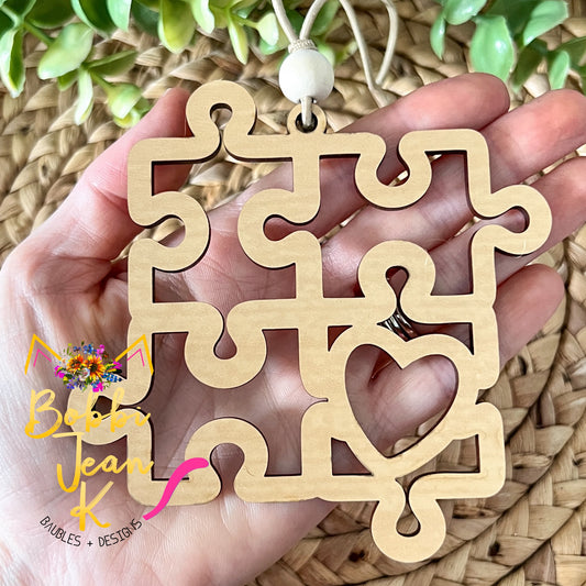 Autism Puzzle Pieces "Your Unique Journey" Wood Story Ornament & Car Charm