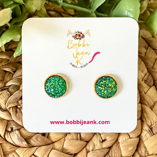 SALE: Green Faux Druzy Studs 12mm: Choose Silver or Gold Settings