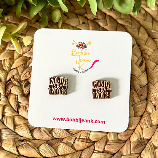World's Best Teacher Wood Studs: Choose From White Birch or Cherry Wood