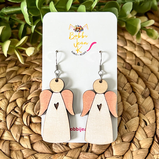 Hand Stained Angel Wood Earrings: Choose from 1 or 3 Engraved Hearts