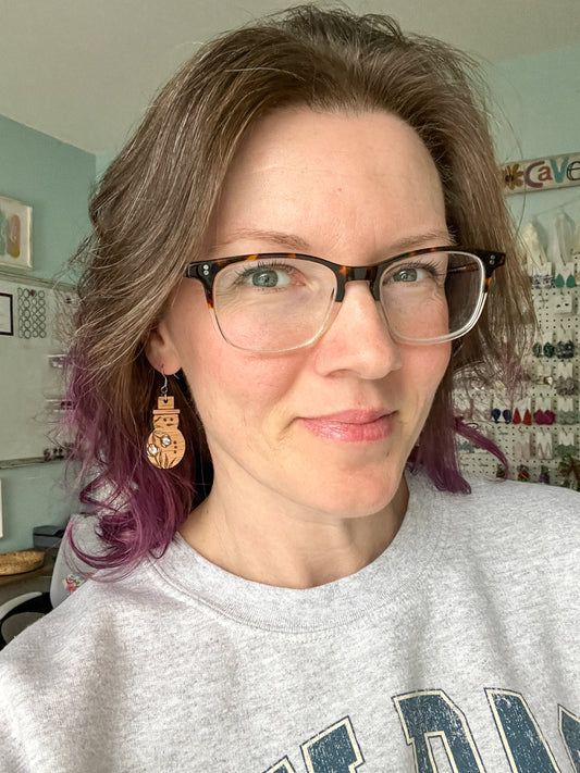 Hand Painted Red Oak Wood Floral Snowman Earrings