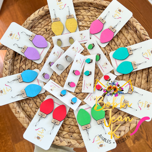 Hand Painted Light Bulb STUD Wood Earrings - Choose from 8 Colors