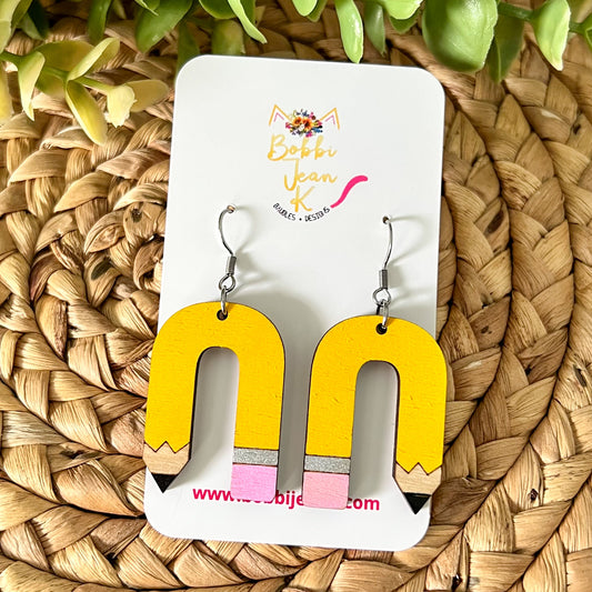 Pencil Arch Hand Painted Wood Earrings: Choose From 2 Designs