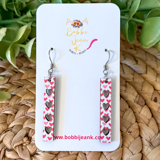 Mini Heart Slim Bar Wood Earrings: Choose From 2 Sizes