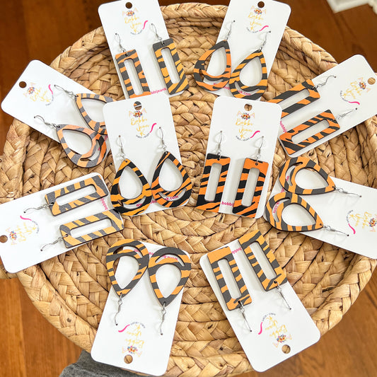 Tiger Striped Wood Earrings: Choose from 2 Styles - LAST CHANCE