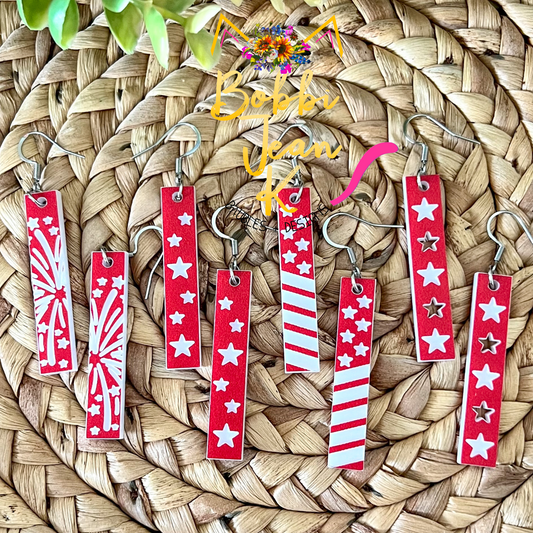 Red or Blue Engraved Patriotic Acrylic Bar Earrings: Choose From 4 Styles