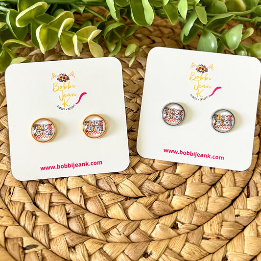 SALE: Trick or Teach Glass Studs 12mm: Choose Silver or Gold Settings - ONLY 2 LEFT