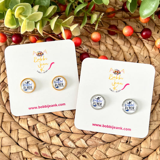 SALE: Frequent Flyer Glass Studs 12mm: Choose Silver or Gold Settings - ONLY 2 LEFT