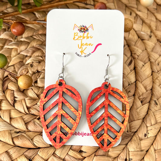 Fall Colored Wood Leaf Earrings: Choose From 2 Styles