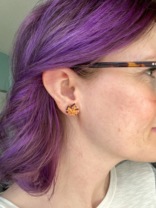 Fall Colored Maple Leaf Wood Studs - ONLY ONE LEFT IN CURRENT STOCK