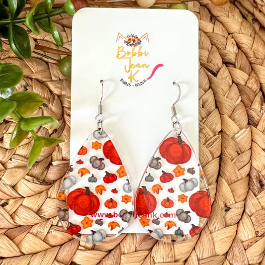 Pumpkin & Leaves Acrylic Earrings: Choose From 2 Shape Options