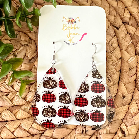 Leopard & Plaid Pumpkin Acrylic Earrings: Choose From 2 Shape Options