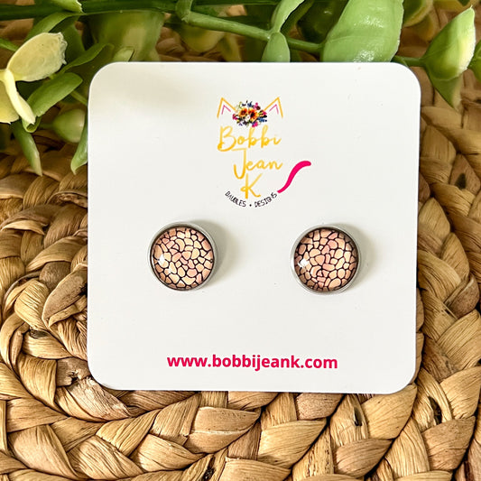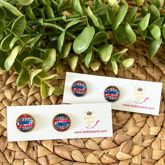SALE: Americana Leopard Striped Glass Studs 12mm: Choose Silver or Gold Settings - LAST CHANCE
