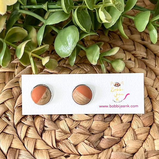 SALE: Salmon Wood & Resin Studs 12mm: Choose Silver or Gold Settings - LAST CHANCE