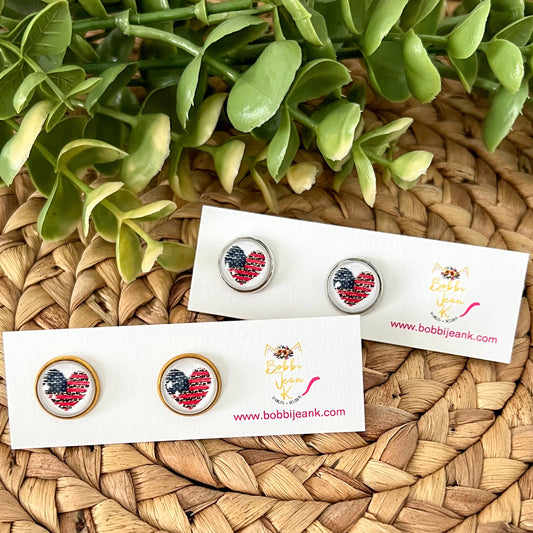 SALE: Americana Leopard Heart Glass Studs 12mm: Choose Silver or Gold Settings - ONLY ONE LEFT
