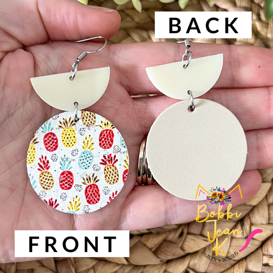 Pineapple Circle Drop Cork on Leather Earrings - ONLY 2 LEFT