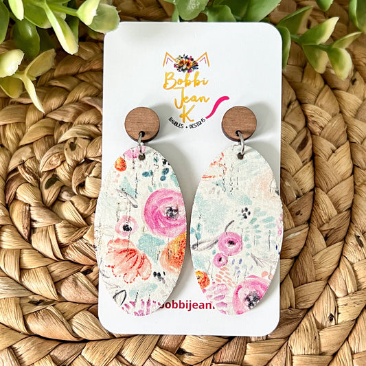 Peony Floral Cork on Leather Earrings: Choose From 3 Styles - ONLY 2 LEFT
