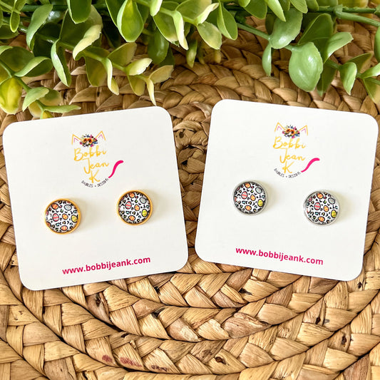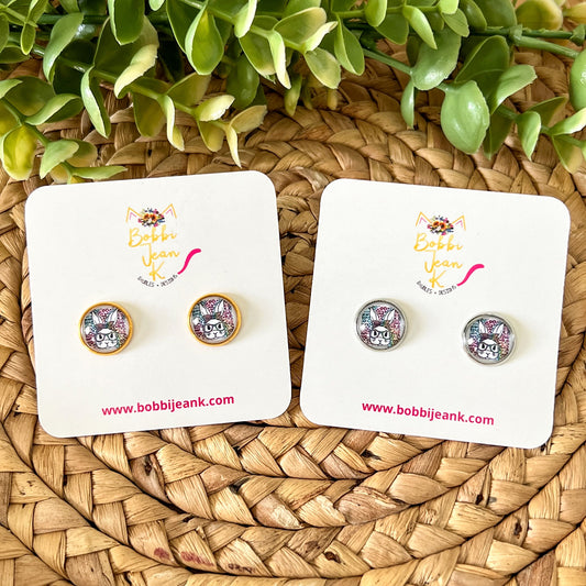 SALE: Colorful Bunnies Glass Studs 12mm: Choose Silver or Gold Settings - ONLY 2 LEFT