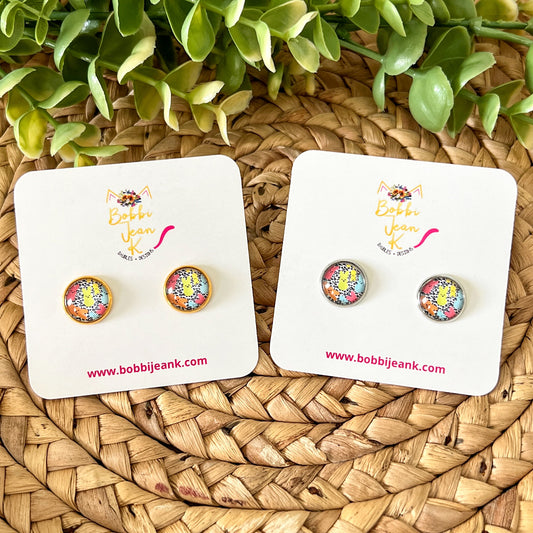 SALE: Colorful Eggs Glass Studs 12mm: Choose Silver or Gold Settings - LAST CHANCE