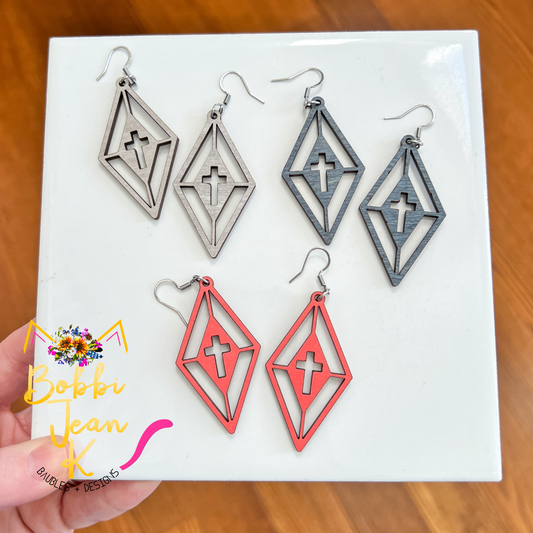 Cross Diamond Dyed Wood Earrings: Choose From 3 Colors - LAST CHANCE - DESIGN BEING DISCONTINUED (Was $12)