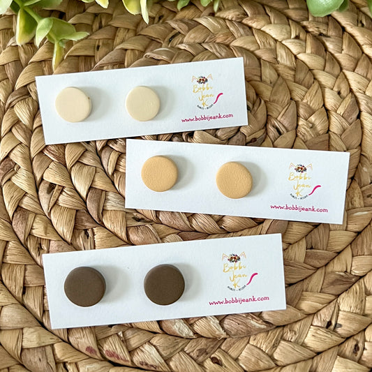 SALE: Solid Clay "Coin" Studs: Choose From 3 Colors - BEING DISCONTINUED (Was $10)