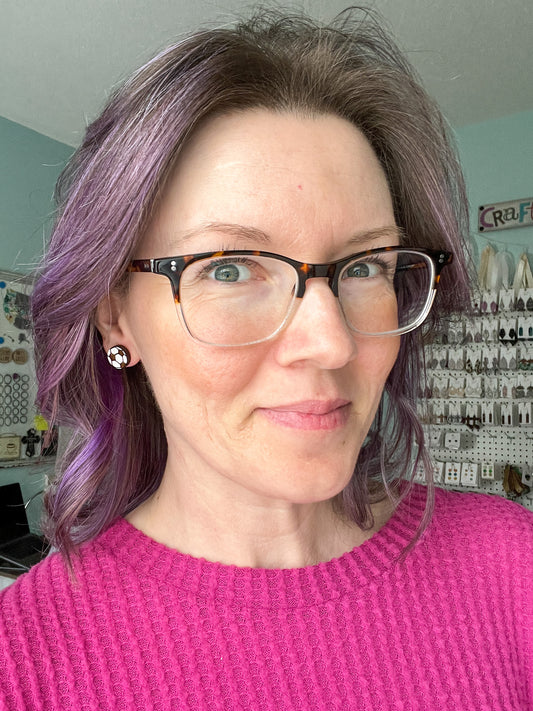 SALE: Soccer Ball (Style 1) Glass Studs 12mm: Choose Silver or Gold Settings - ONLY ONE LEFT