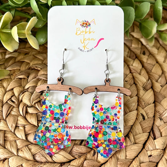Rainbow Dots Acrylic Swimsuit & Flip Flop Earrings