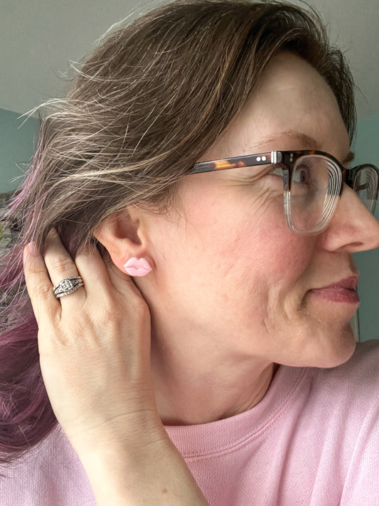 Light Pink Lip Shape Clay Studs - LAST CHANCE