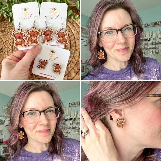 Highland Cow Hand Painted Wood Earrings: Choose from 3 Sizes
