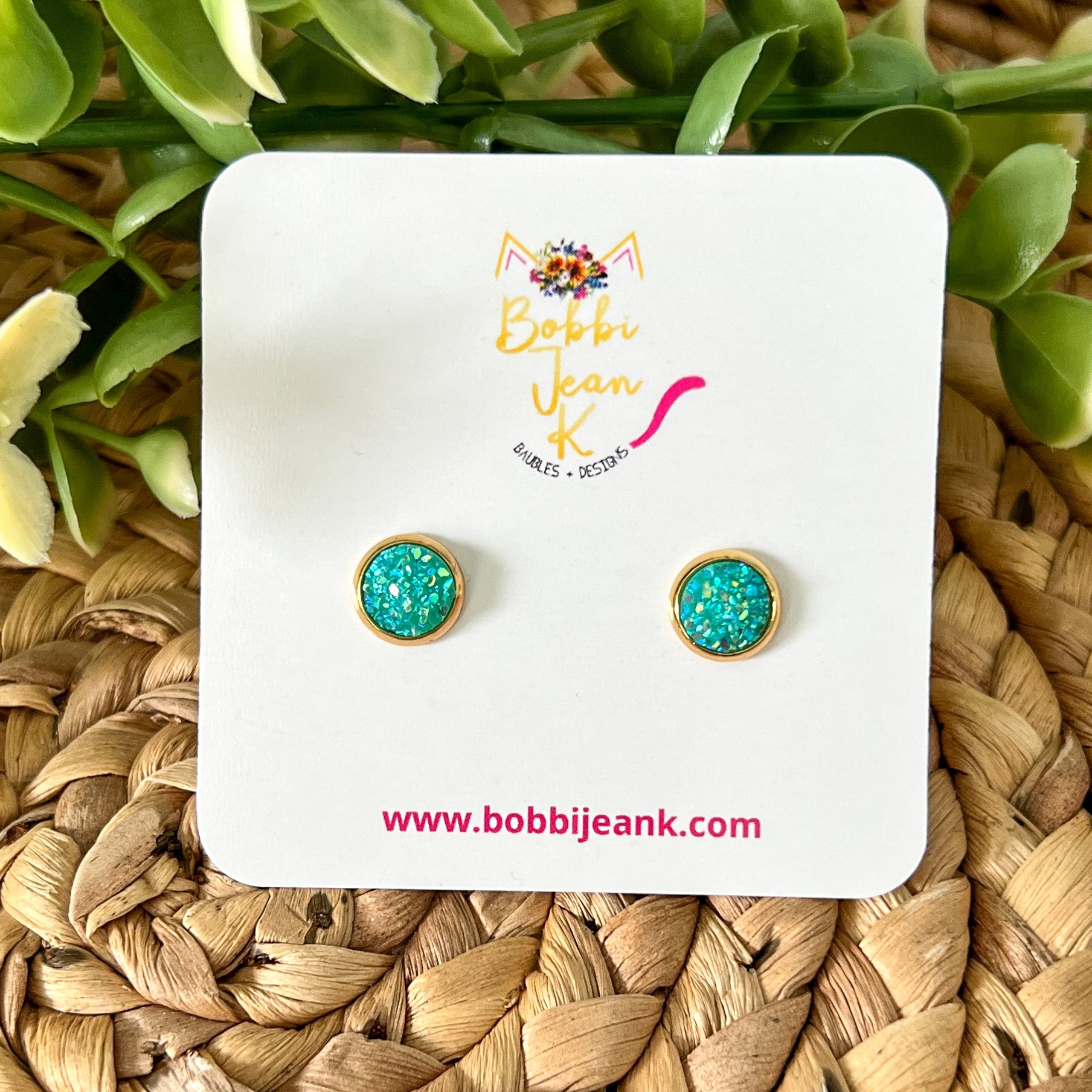 SALE: Aqua Frosted Sparkle Faux Druzy Studs 8mm: Choose Silver or Gold Settings - LOW STOCK