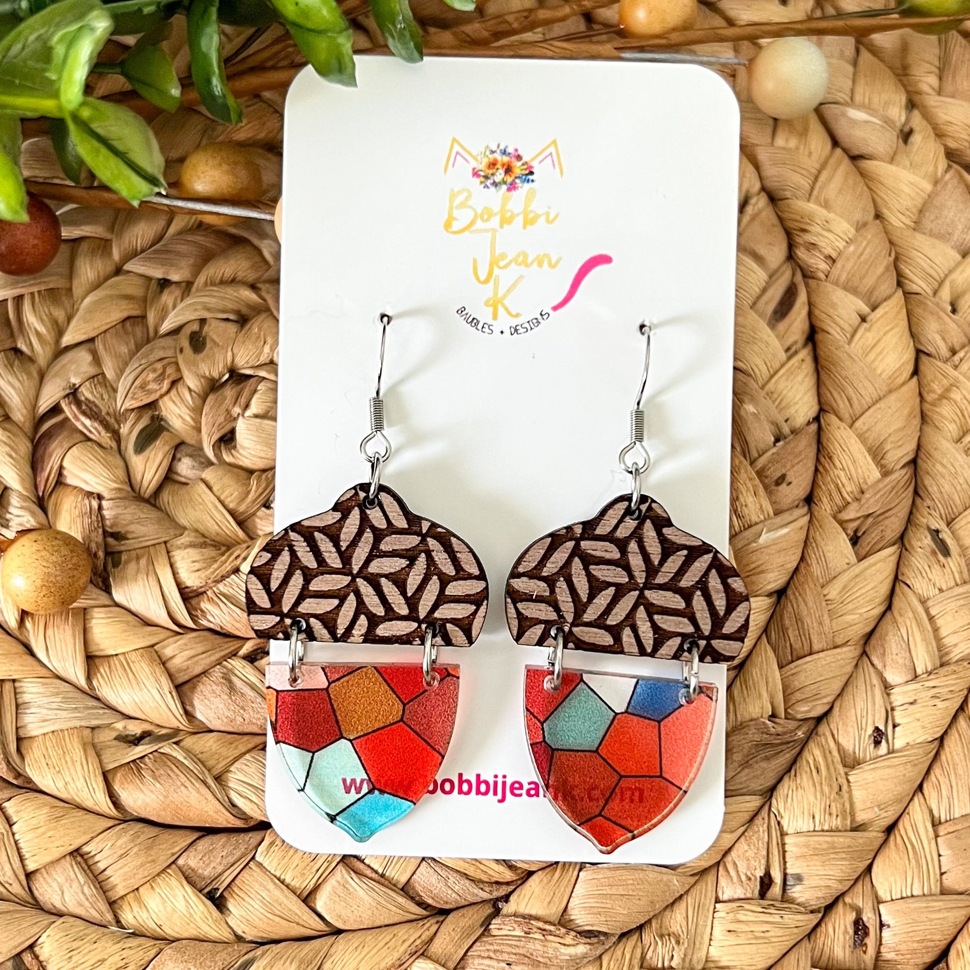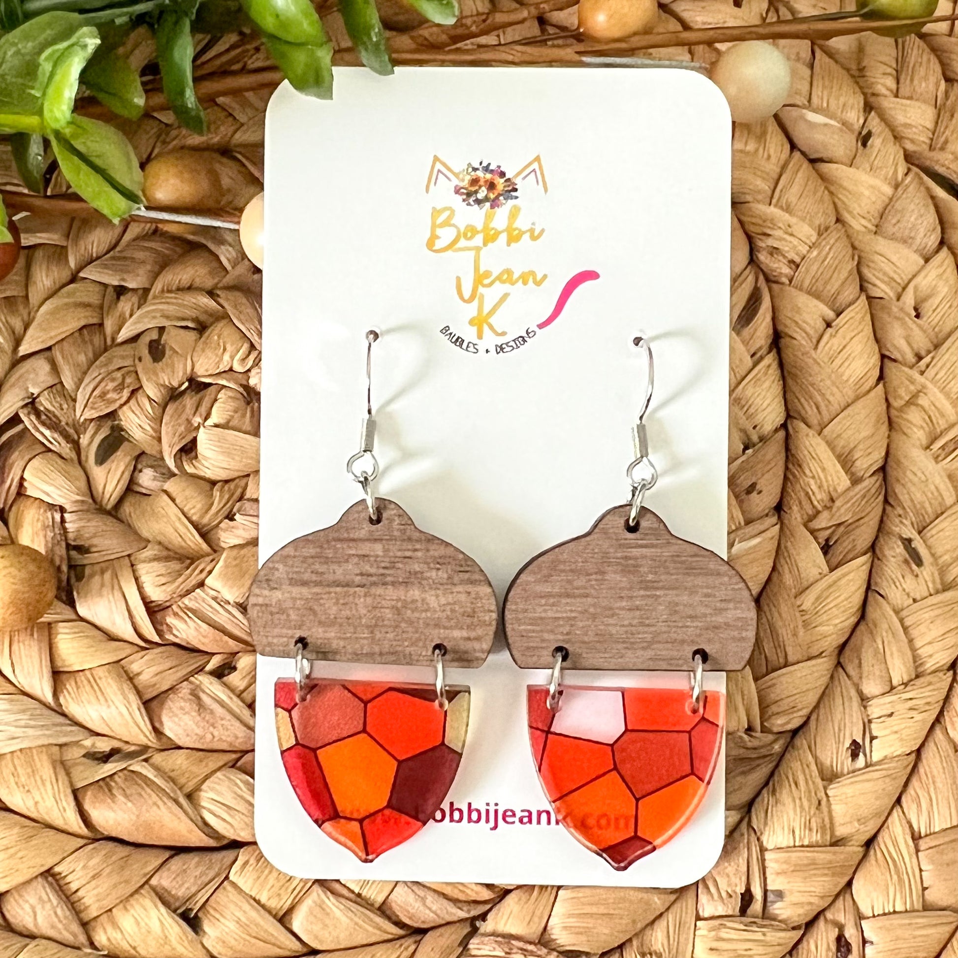 Acorn Wood & Acrylic Dangles: Choose From 3 Styles - LAST CHANCE