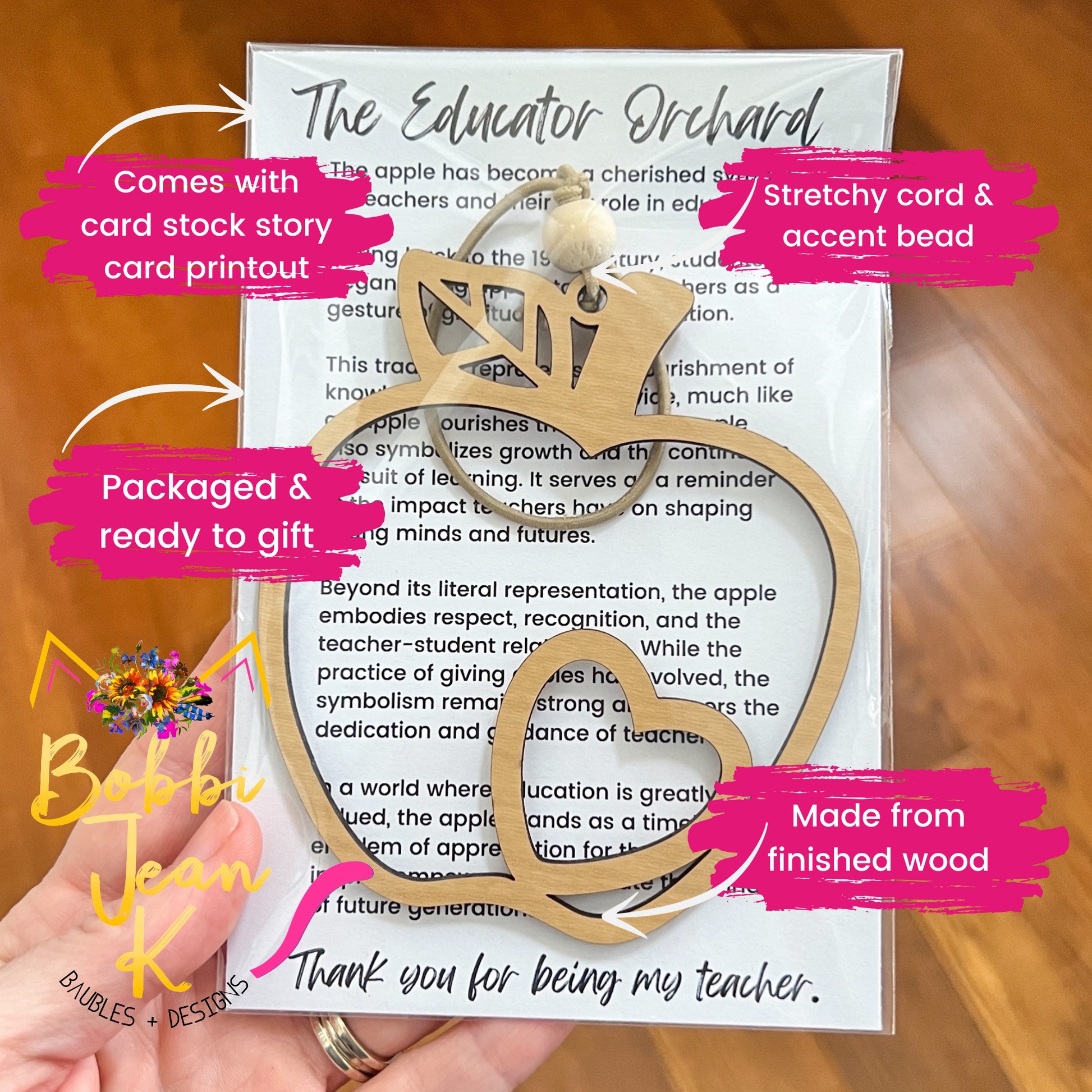 Apple "The Educator Orchard" Wood Story Ornament & Car Charm