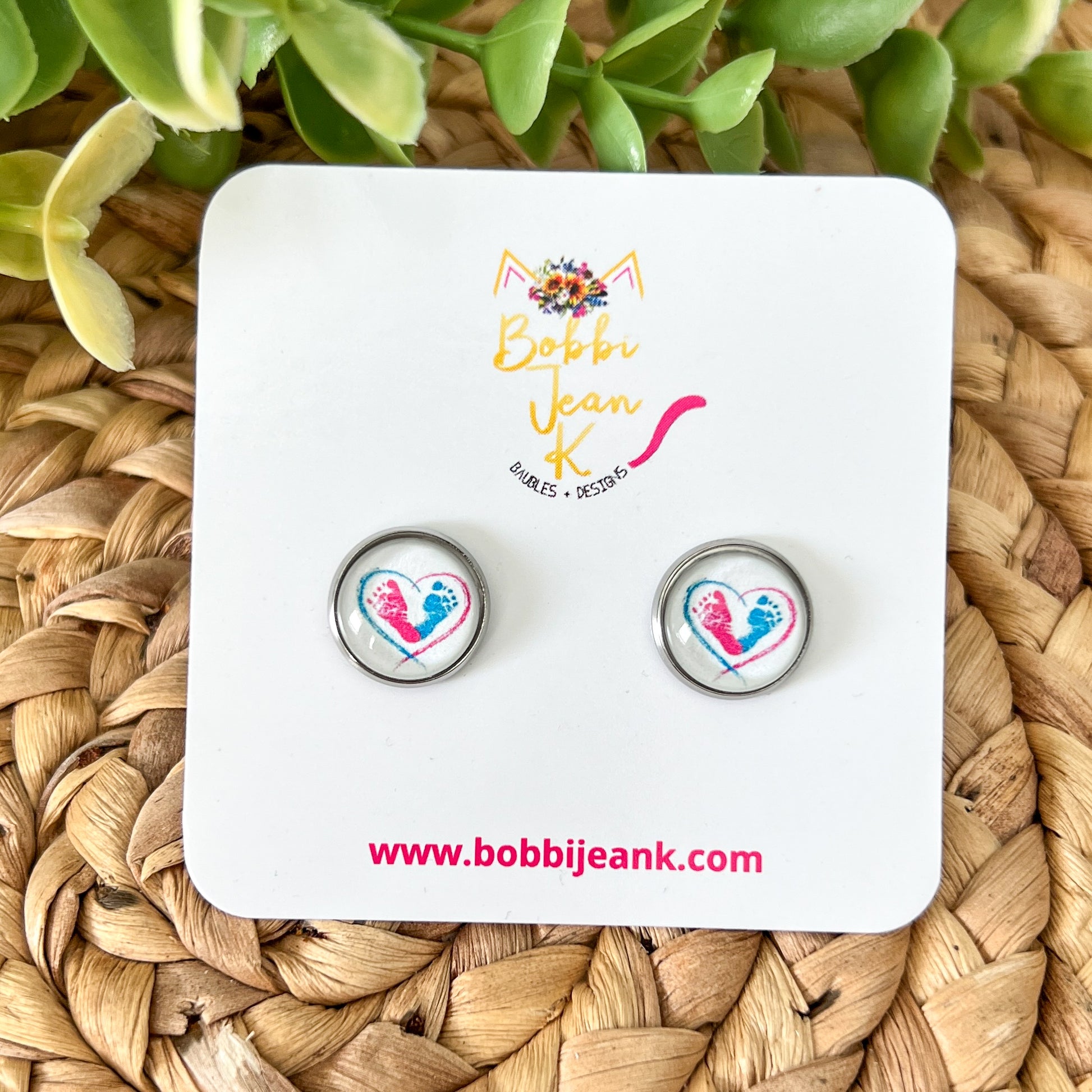 SALE: Baby Feet Glass Studs 12mm: Choose Silver or Gold Settings