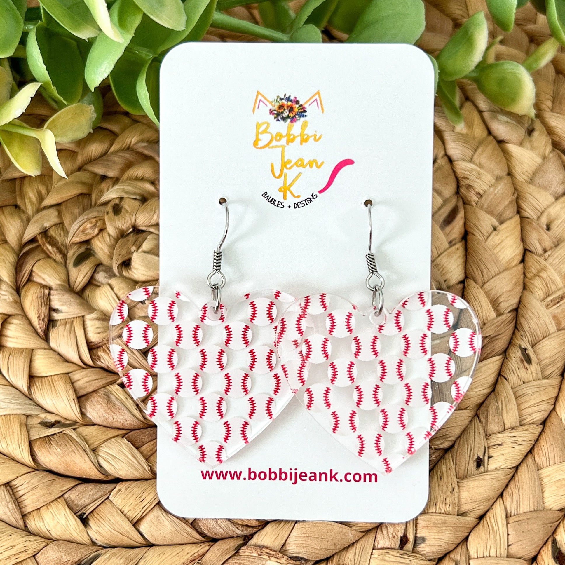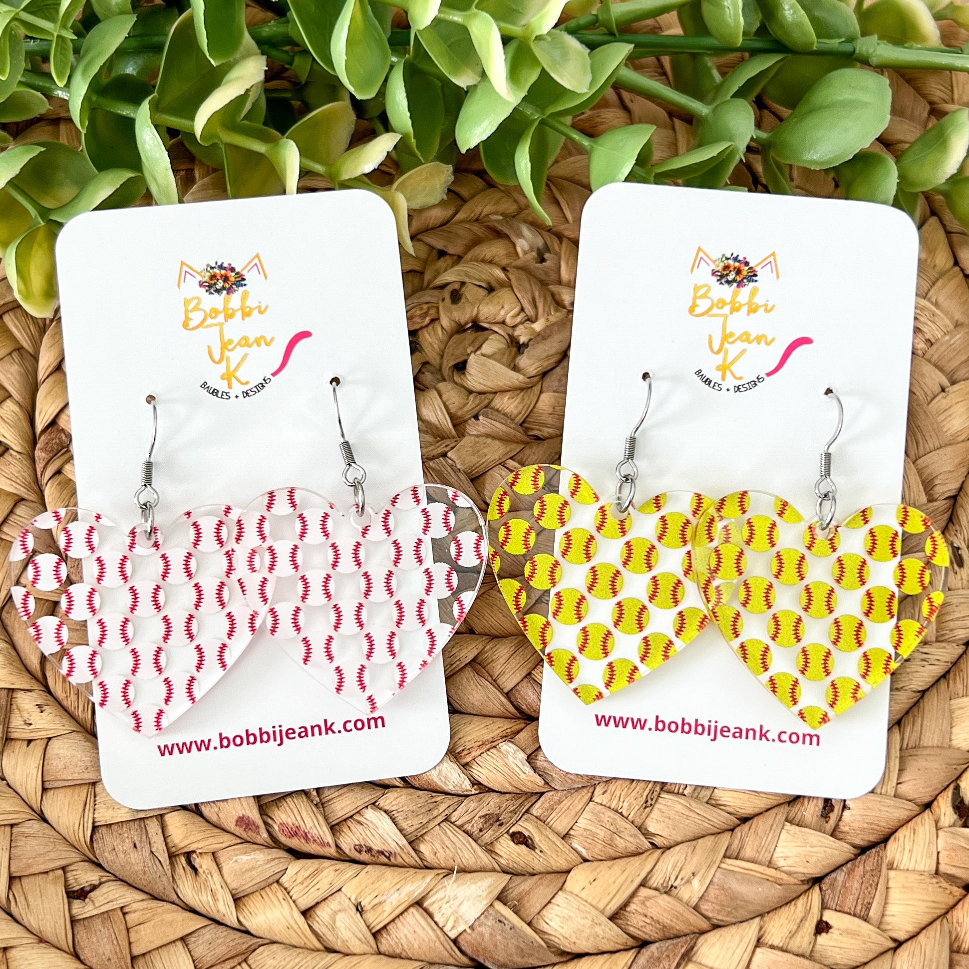 SALE: Baseball & Softball Acrylic Heart Earrings. - LAST CHANCE (WAS $14)