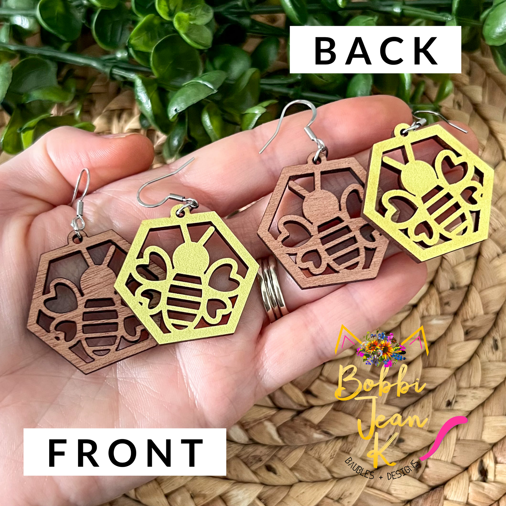 Bee Hexagon Wood Earrings: Choose From 2 Wood Options