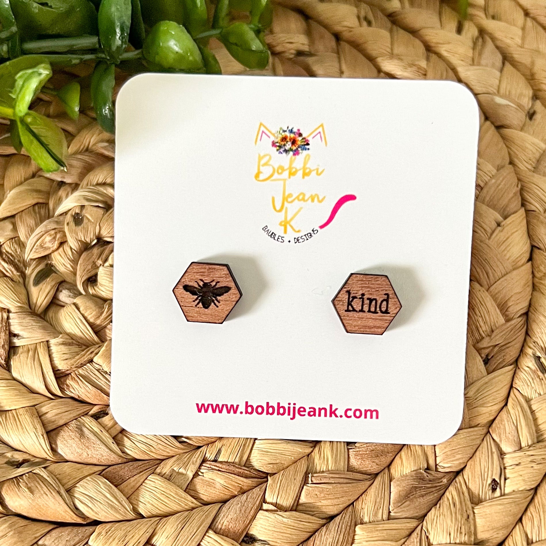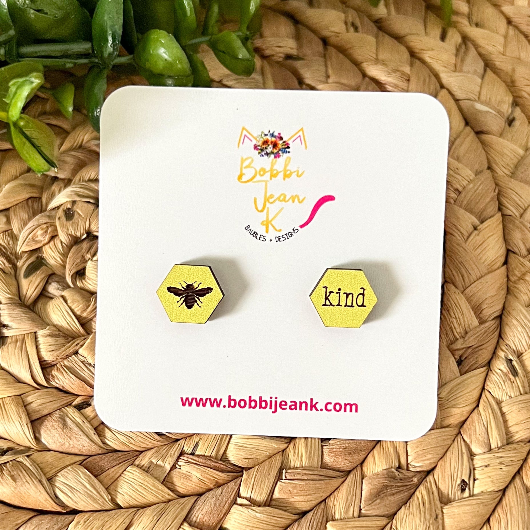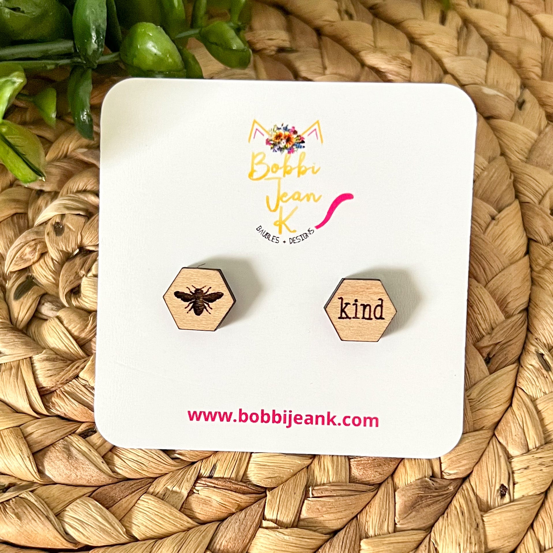SALE: Bee Kind Wood Studs: Choose From 3 Wood Options - DESIGN BEING DISCONTINUED (Was $8)