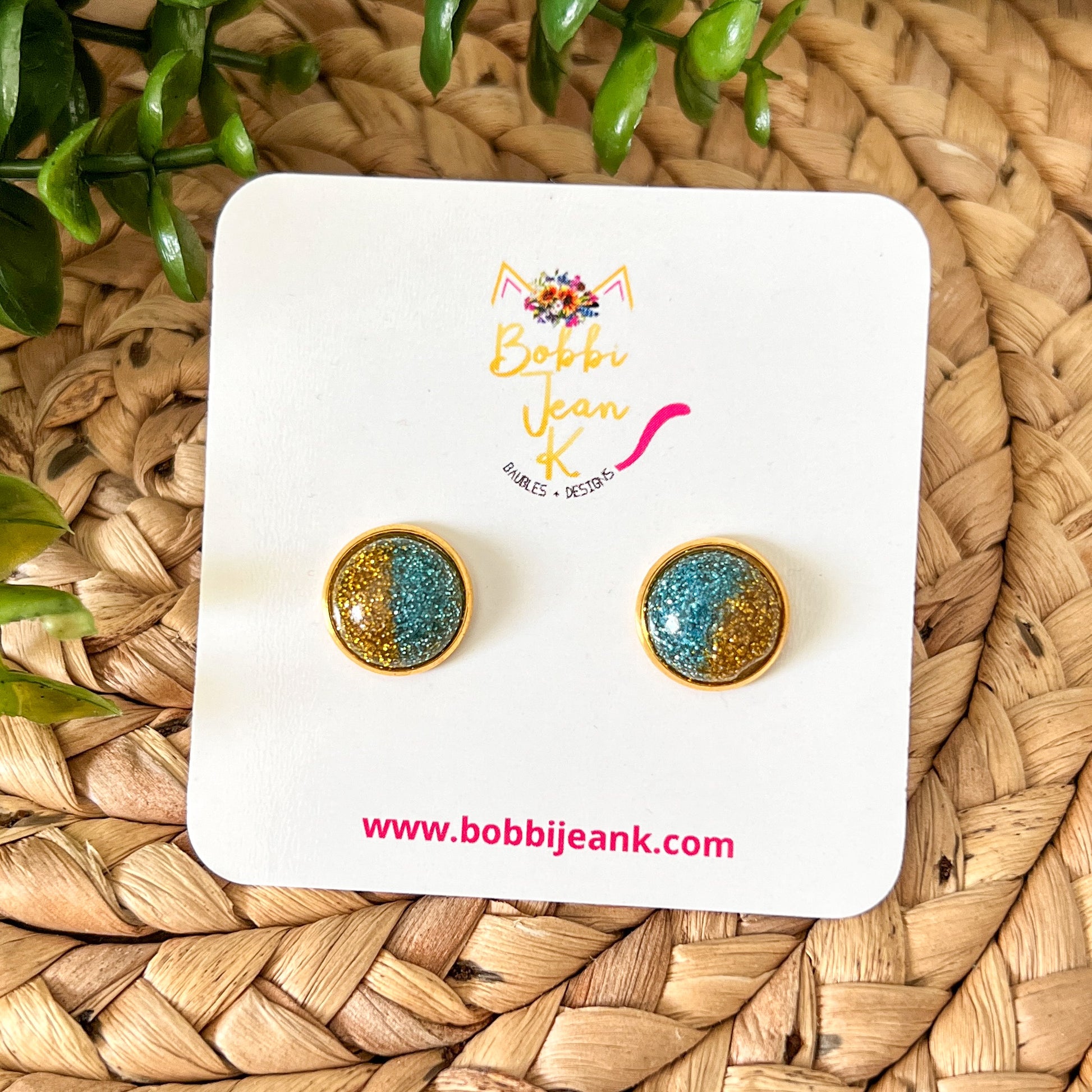 Special Features: These shimmer studs are unique in that each stud varies slightly with the blue/gold divide, however, each pair will have the same overall look and feel of the pairs in the photo.