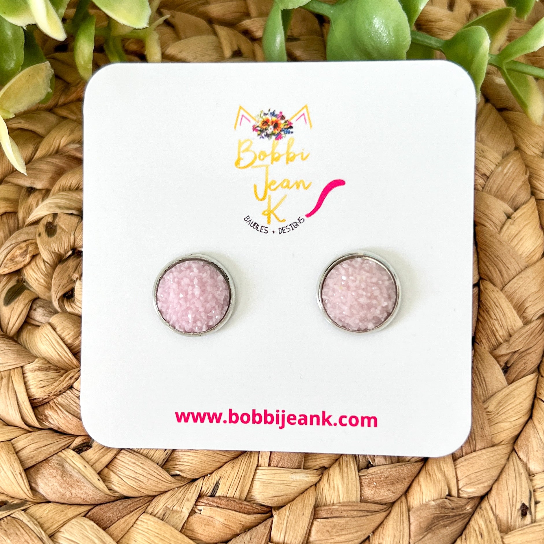 SALE: Blush Frosted Faux Druzy Studs 12mm: Choose Silver or Gold Settings - ONLY ONE LEFT
