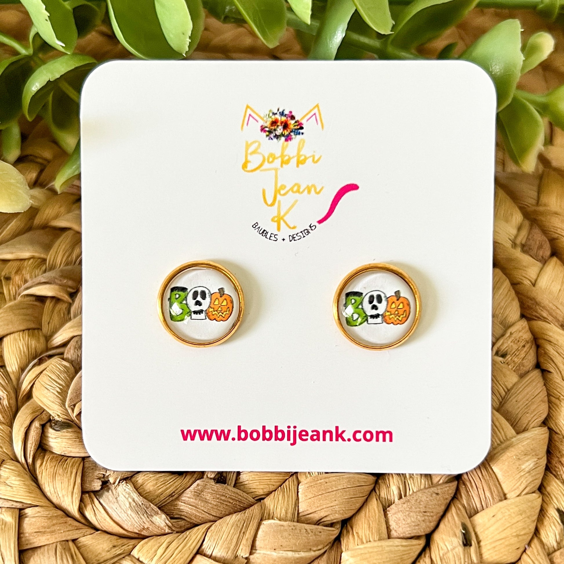 SALE: BOO Glass Studs in 10mm OR 12mm: Choose Silver or Gold Settings - LAST CHANCE