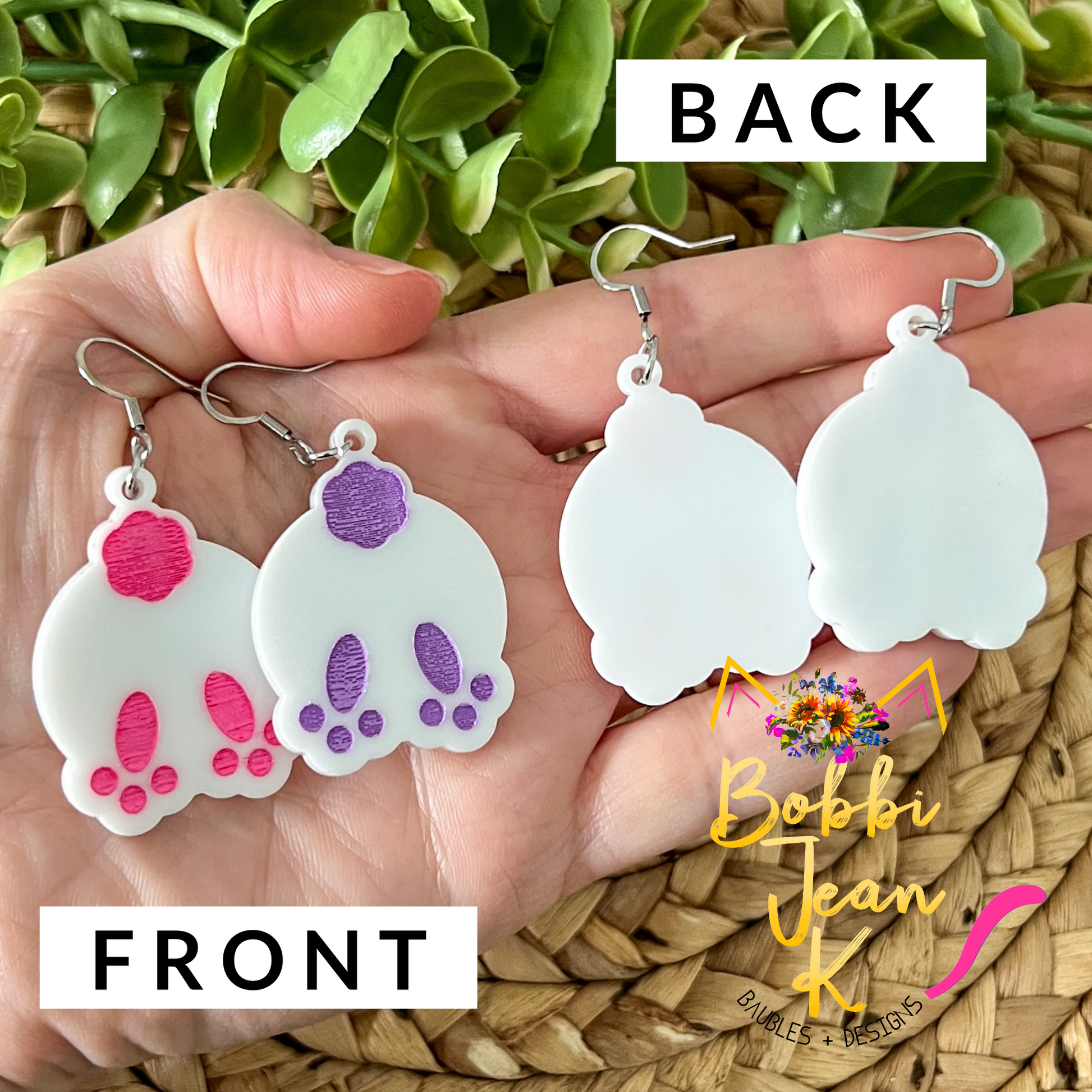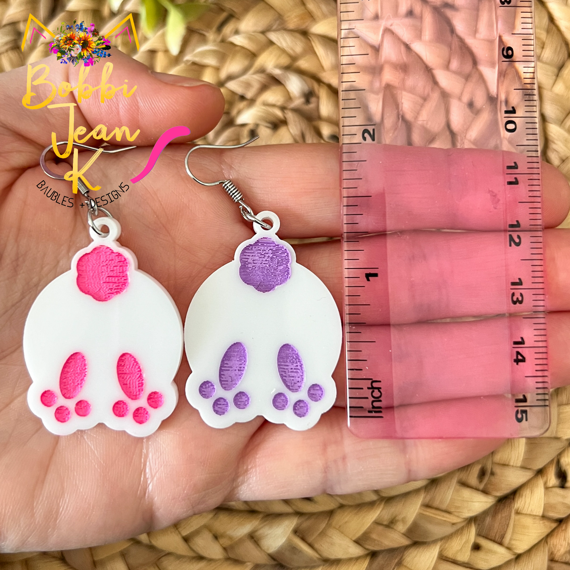 Bunny Butt Hand Painted White Acrylic Earrings: Choose From 2 Colors