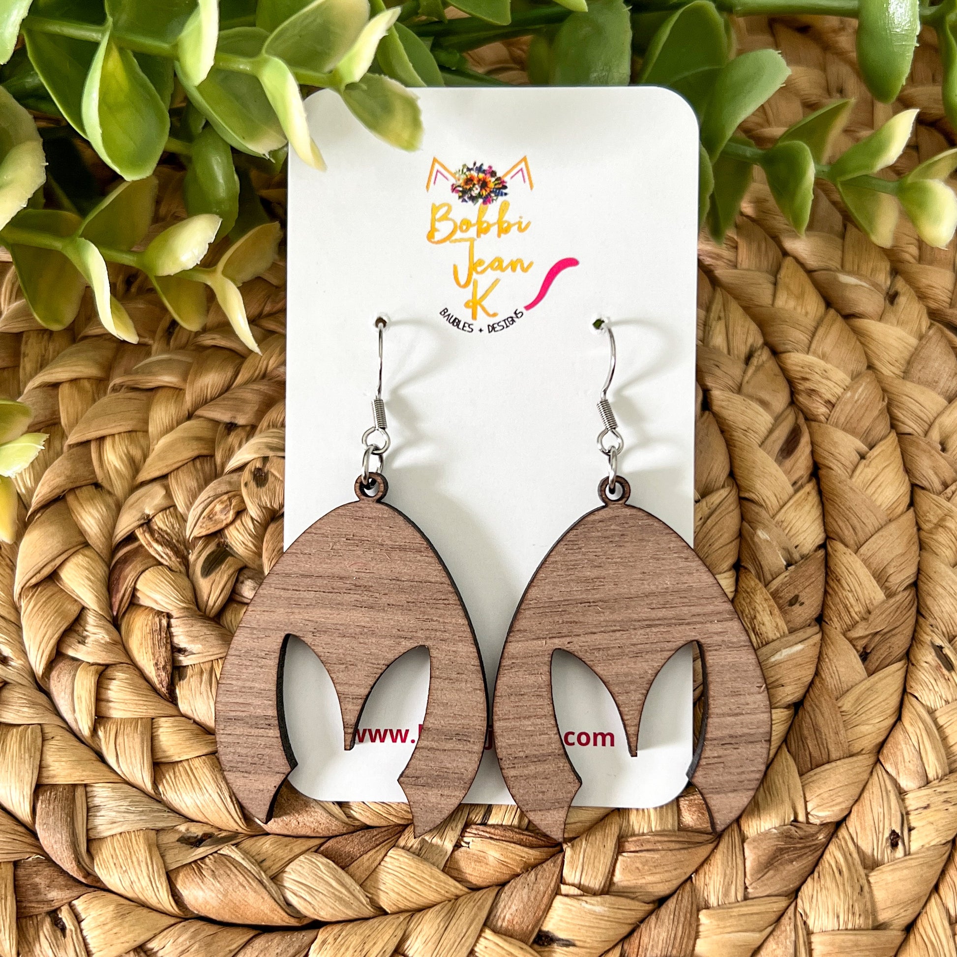 Bunny Silhouette Wood Earrings: Choose From Walnut or Hand Painted Pink Wash - LAST CHANCE - DESIGN BEING DISCONTINUED