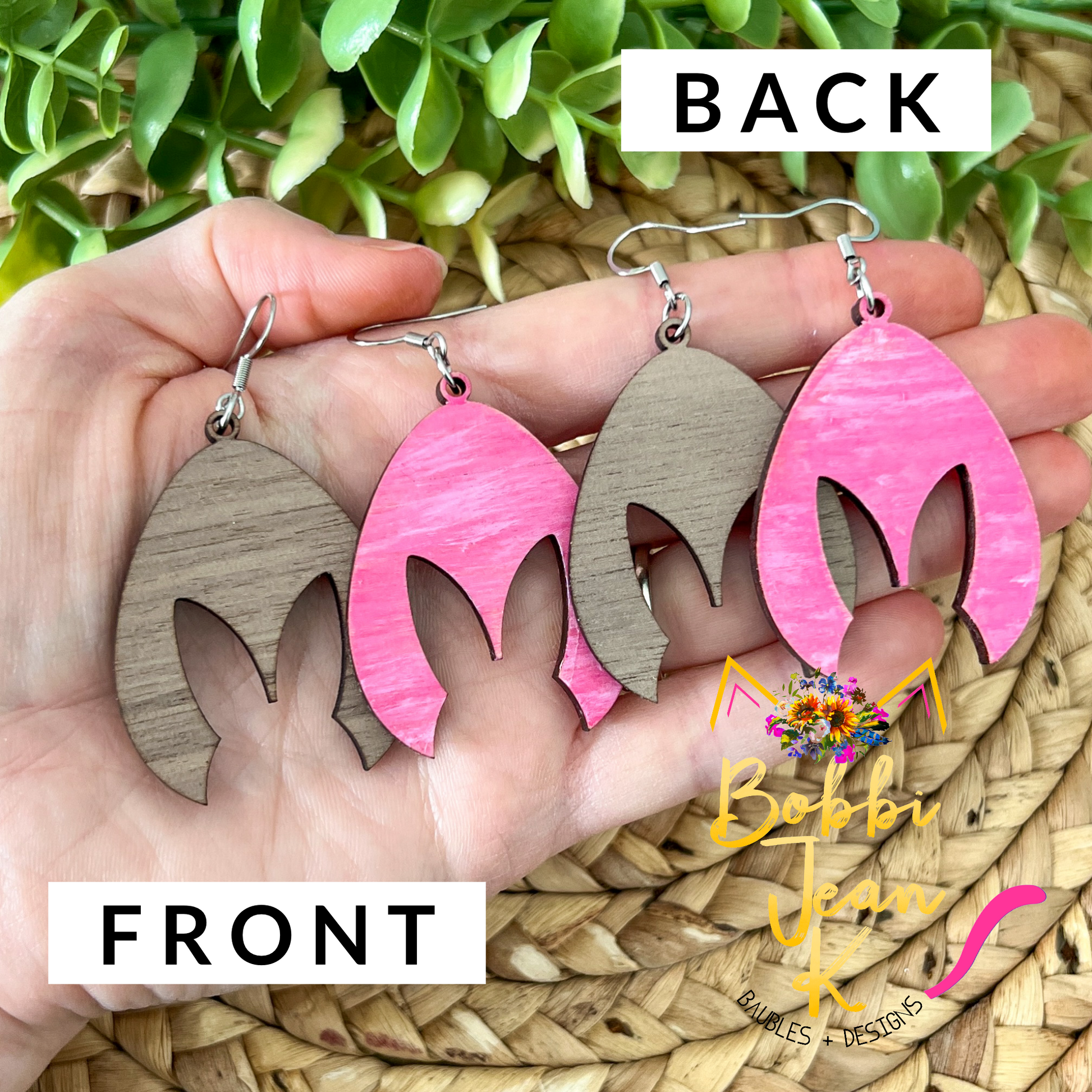 - PLEASE NOTE: The pink wash is HAND PAINTED, therefore, small imperfections may be seen, but are not common. Earrings are also sealed to provide protection from the elements. Natural wood grain will vary from pair to pair but IS NOT considered a flaw.