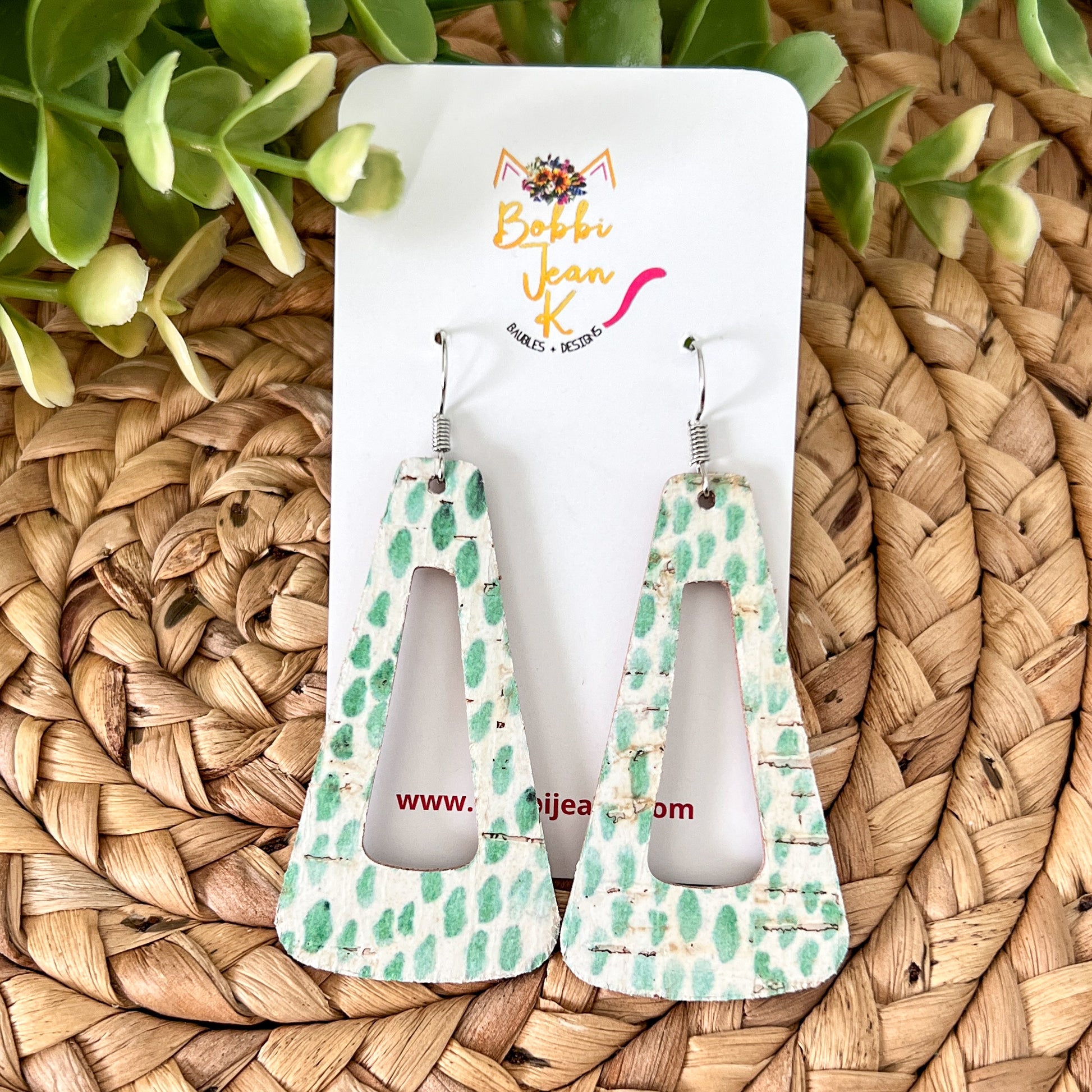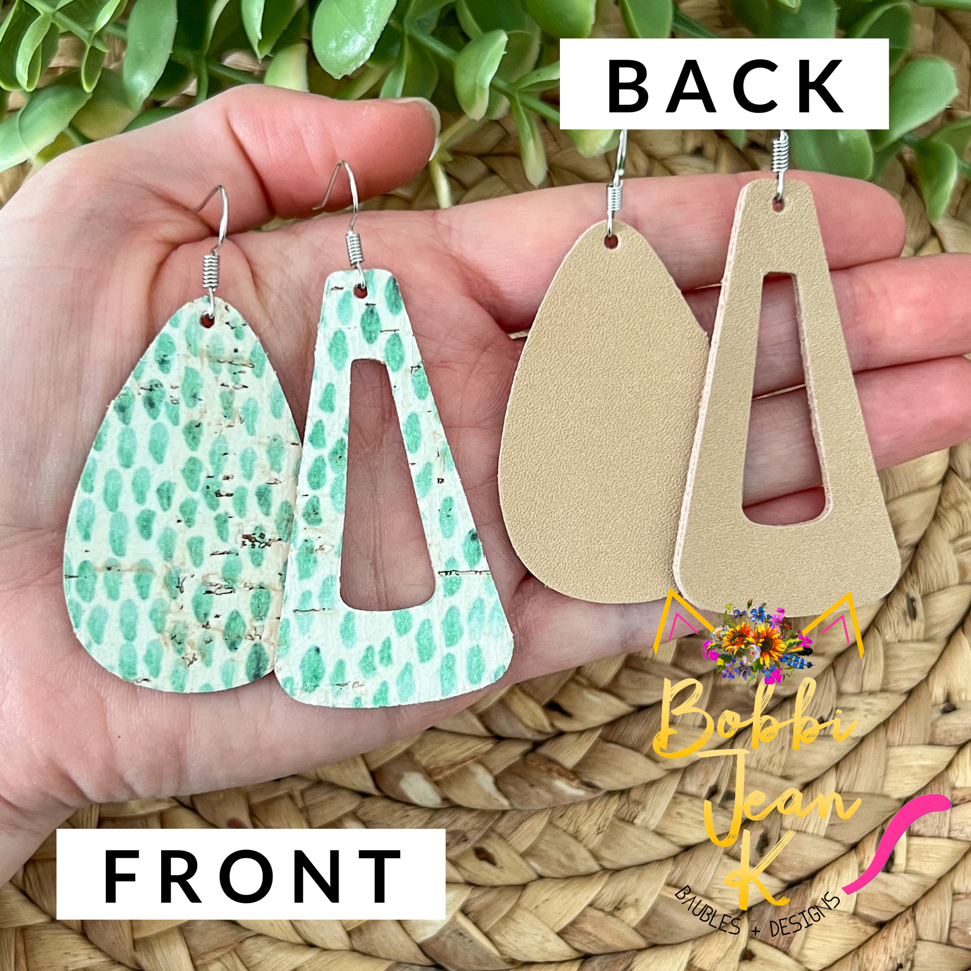 - PLEASE NOTE: Due to this being genuine cork on leather, the natural pieces of cork show through the pattern (similar to how cork looks in real life). This IS NOT a flaw in the print or earring.